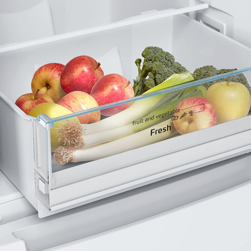 El frigorífico combi Balay 3KFE361WI tiene una capacidad total de 279 litros, distribuidos en un compartimento de refrigeración y un congelador. La tecnología de refrigeración incluye un sistema de frío estático en el frigorífico y un sistema de frío ventilado en el congelador. Este modelo dispone de estantes de cristal en el interior del frigorífico, que facilitan la organización de los alimentos. También cuenta con un cajón para frutas y verduras con control de humedad. El congelador tiene capacidad para almacenar una cantidad considerable de alimentos congelados en su diseño de compartimentos. Este frigorífico está equipado con una eficiencia energética clasificada, que se mide en la escala energética de la Unión Europea. Dispone de un sistema de control mecánico de temperatura, accesible desde la parte frontal del aparato, que permite ajustar la temperatura de manera precisa. La instalación se realiza con conexión eléctrica estándar, y el frigorífico debe estar nivelado para un funcionamiento eficiente. Este modelo cumple con las normativas vigentes en cuanto a seguridad eléctrica y de refrigeración. Su construcción incluye materiales como acero y plástico en diversos elementos internos y externos, garantizando su funcionalidad y mantenimiento. El Balay 3KFE361WI se adapta a las configuraciones de cocina convencionales sin requerir modificaciones adicionales en el espacio.