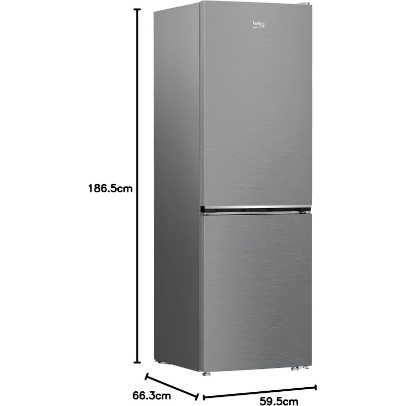 El frigorífico Combi Beko B1RCNE364XB tiene unas dimensiones de 187 cm de altura, 59.5 cm de ancho y 66.3 cm de profundidad. Su capacidad total es de 364 litros, divididos en 247 litros para el compartimento del refrigerador y 117 litros para el congelador. Está diseñado con tecnología No Frost, que evita la acumulación de escarcha en el interior del congelador. El frigorífico tiene una clasificación energética de E, lo que permite una reducción del consumo de energía en comparación con otros modelos. Dispone de estantes ajustables en el interior del refrigerador, elaborados en vidrio templado, facilitando la organización de los alimentos. El congelador presenta compartimentos enterrados, diseñados para optimizar el espacio de almacenamiento. El sistema de ventilación del frigorífico asegura una circulación de aire uniforme, contribuyendo a la conservación de los productos almacenados. Además, cuenta con iluminación LED en su interior, que proporciona una mejor visibilidad sin generar calor excesivo. Las puertas son reversibles, lo que permite cambiar la dirección de apertura según las necesidades del espacio en el que se instale. Este modelo incluye un dispensador de agua, que proporciona acceso directo al agua fría. La instalación es sencilla, y el frigorífico es compatible con los sistemas de toma de corriente estándar.