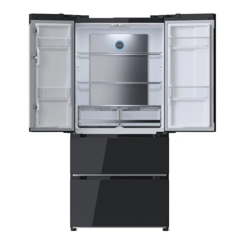 Frigorífico de puerta francesa con compartimentos independientes de refrigeración y congelación integrados en una sola unidad. Presenta una anchura de 83,6 cm, una altura de 183 cm y una capacidad total de 436 litros, conforme a los métodos de medición normalizados. Dispone de clasificación de eficiencia energética E según la normativa europea vigente. Incorpora sistema de refrigeración Total No Frost para la gestión automática de la escarcha y funciones de enfriamiento rápido (Fast Cooling) y congelación rápida (Freezing) para el ajuste temporal de las temperaturas. Incluye alarma de puerta abierta y compresor con tecnología Inverter Plus para la gestión del funcionamiento del sistema de refrigeración. El espacio interior se organiza mediante estantes y cajones destinados a la conservación de alimentos refrigerados y congelados. Dispone de control electrónico de temperatura para la regulación de los compartimentos e iluminación interior integrada. Funciona con alimentación eléctrica estándar conforme a las especificaciones técnicas declaradas por el fabricante.