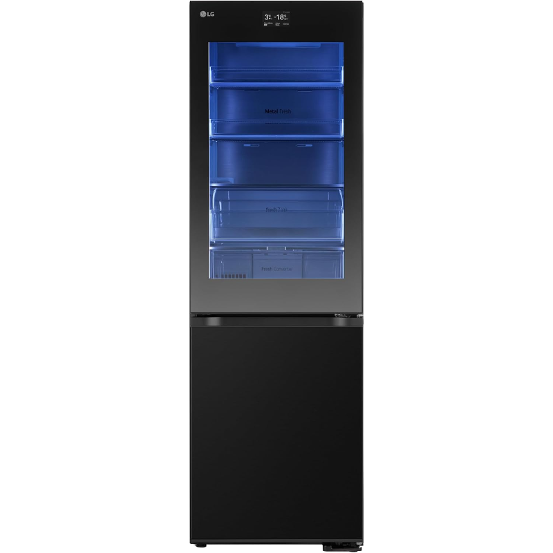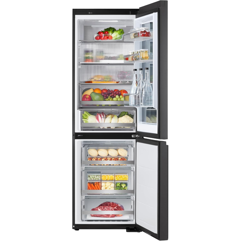 El frigorífico Combi LG GBG7190CEV cuenta con una capacidad total de 349 litros. Incluye un sistema No Frost, que previene la acumulación de escarcha en el interior. Este modelo dispone de un compresor inverter y ofrece un control de temperatura eficiente para los compartimentos de refrigeración y congelación. Su disposición interna incluye estantes ajustables de vidrio templado, lo que permite organizar los alimentos de manera flexible. También cuenta con un compartimento específico para frutas y verduras, así como estantes en la puerta para la colocación de botellas y latas. El sistema de iluminación interior es LED, proporcionando visibilidad óptima del contenido. El congelador tiene capacidad para almacenar varios productos y posee una función de congelación rápida. Este frigorífico opera en un rango de temperatura de refrigeración de 0°C a 5°C y de congelación de -18°C a -24°C. El nivel de ruido está clasificado en 38 dB, lo que indica un funcionamiento relativamente silencioso. La clasificación energética del aparato es C, con un consumo anual de energía que se sitúa en torno a 250 kWh, contribuyendo a un funcionamiento eficiente en términos energéticos. Este modelo también incluye un sistema de circulación de aire para mantener una temperatura uniforme en el interior.