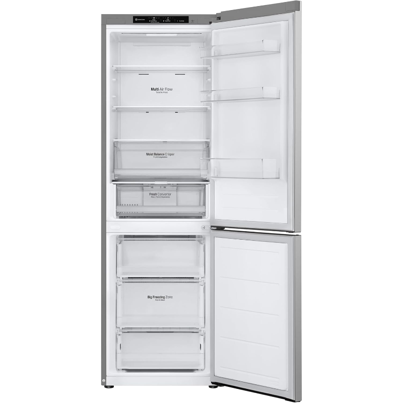 El Combi LG GBV3100CPY tiene una capacidad total de 344 litros, que incluye un compartimento de refrigeración y un congelador. Este modelo utiliza tecnología No Frost, lo que impide la formación de escarcha en el interior, facilitando la limpieza. La distribución de la temperatura se realiza de manera uniforme gracias a su sistema de ventilación. Cuenta con estantes ajustables que permiten organizar los alimentos de manera flexible. El compartimento del congelador tiene una clasificación de 4 estrellas, lo que indica que puede alcanzar temperaturas inferiores a -18 °C. El dispositivo cuenta con un compresor que regula la temperatura según las necesidades internas, optimizando el consumo energético. Este frigorífico tiene una clasificación de eficiencia energética, que indica su consumo eléctrico en relación con su capacidad. Además, dispone de un sistema de iluminación interna que facilita la visibilidad de los productos almacenados. Las puertas tienen un sistema de cierre que garantiza un buen sellado, contribuyendo a la conservación de los alimentos. Su diseño se adapta a diversas configuraciones de cocina. El rango de temperatura para el compartimento de refrigeración oscila entre 0 °C y 10 °C, mientras que el congelador opera a temperaturas por debajo de -18 °C. El modelo incluye un panel de control que permite ajustar las funciones de refrigeración y descongelación. También está equipado con dispensadores que facilitan el acceso a ciertas funciones. Este frigorífico está diseñado para un funcionamiento eficiente, acorde con las normativas de seguridad y funcionamiento aplicables.