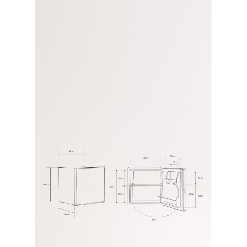 CREATE FRIDGE MINIBAR es una nevera minibar con una capacidad total de 43 litros y una potencia eléctrica nominal de 65 W. Cuenta con un sistema de refrigeración eléctrica de un solo compartimento. Dispone de puerta reversible, lo que permite configurar el sentido de apertura según la instalación. Funciona mediante conexión a la red eléctrica y presenta una clasificación de eficiencia energética F conforme a la normativa europea vigente. El interior incorpora estantes destinados a la organización del contenido y un compartimento principal refrigerado. El volumen útil declarado por el fabricante es de 43 litros. El equipo integra un sistema de control mecánico para el ajuste de la temperatura dentro del rango especificado por el fabricante. Se trata de una unidad independiente y no integrable.