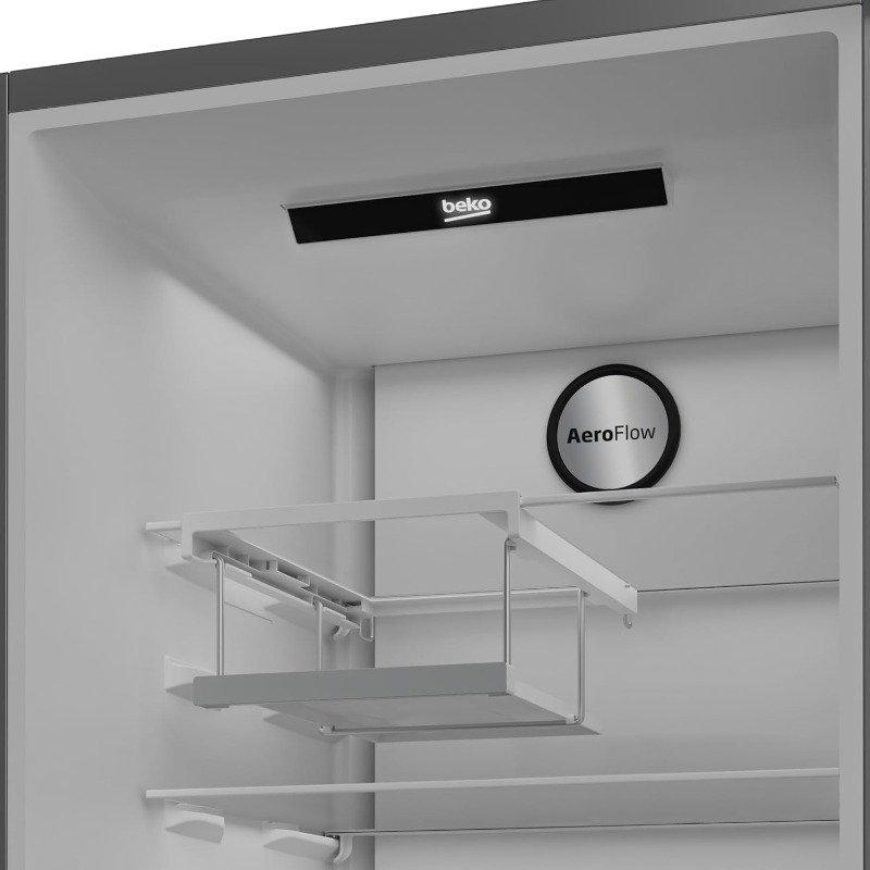 Frigorífico 1 Puerta Beko B3RMLNE444HXB con dimensiones de 1.86 metros y capacidad de 365 litros. Este modelo presenta un diseño de una sola puerta con un acabado en acero inoxidable. Integra un sistema de refrigeración estático y cuenta con estantes ajustables en el interior para facilitar la organización de los alimentos. Posee un compartimento de congelación ubicado en la parte superior. Su consumo energético se clasifica en la categoría E según la normativa europea. Este frigorífico está diseñado para funcionar de manera eficiente dentro de un rango de temperatura ambiente de 10 a 43 grados Celsius y cuenta con una capacidad de congelación que permite almacenar ciertos alimentos durante periodos prolongados. Su sistema de cerradura permite un cierre seguro de la puerta. Además, incluye sistemas de refrigeración que contribuyen a mantener la temperatura deseada. Los materiales utilizados para su construcción cumplen con las regulaciones de seguridad alimentaria. El frigorífico también ofrece un sistema de luces LED en el interior que permite una mejor visibilidad de los productos almacenados. El peso total del dispositivo se sitúa en aproximadamente 70 kilogramos. El equipo posee un bajo nivel de ruido en su funcionamiento, asegurando un ambiente tranquilo. El Beko B3RMLNE444HXB cuenta con una categoría de eficiencia energética E y sus dimensiones generales son adecuadas para espacios limitados. Este frigorífico puede ser conectado a una fuente de alimentación estándar de 220-240V.