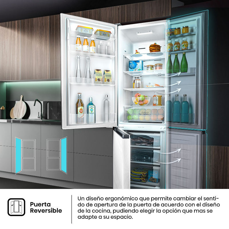 El frigorífico combi Hisense RB329N4AWE tiene una altura de 180 cm y un volumen total de 255 litros. Está diseñado con un sistema de refrigeración que incluye un compresor y un sistema de descongelación. Este modelo cuenta con una sección de refrigerador y una sección de congelador, con estantes ajustables y compartimientos para almacenamiento de alimentos. El frigorífico dispone de luces LED integradas para una mejor visibilidad en el interior. Su eficiencia energética se clasifica dentro de la categoría A+, lo que indica un consumo de energía moderado. El dispositivo incluye un control mecánico de temperatura que permite ajustar el frío según las necesidades. Además, presenta un nivel de ruido de 40 dB, que se considera un nivel operativo estándar para este tipo de electrodomésticos. Está fabricado con materiales que cumplen con normativas de seguridad y compatibilidad. El frigorífico también incluye una balanza de hielo en el congelador, facilitando su uso. Su capacidad de congelación permite almacenar productos en condiciones de congelación adecuadas. Este modelo de Hisense se presenta como una opción para quienes requieran un refrigerador de tamaño mediano con funciones básicas para la conservación de alimentos.