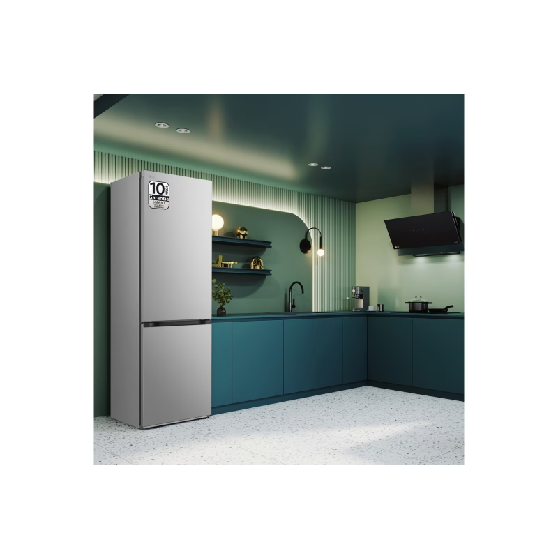 El LG GBV3100EPY tiene una capacidad de 374 litros y utiliza un sistema de refrigeración combinado. Este frigorífico está equipado con tecnología No Frost, que impide la acumulación de hielo. Su diseño incluye un compresor lineal que optimiza el rendimiento energético. Incorpora estantes de vidrio templado ajustables y un organizador de frutas y verduras en el compartimento del frigorífico. El congelador ofrece espacio suficiente para almacenar alimentos congelados y cuenta con bandejas que facilitan la organización. Tiene un sistema de iluminación LED en su interior, lo que mejora la visibilidad. La clasificación energética de este modelo permite un consumo eficiente. Su funcionamiento se basa en un ciclo de refrigeración que utiliza refrigerantes aprobados. Presenta un sistema de puerta reversible, lo que permite adaptar la apertura a diferentes espacios. El ruido operante se sitúa en un nivel aceptable para electrodomésticos. Este frigorífico combina la funcionalidad de un refrigerador y un congelador en una única unidad, diseñada para la conservación de alimentos.