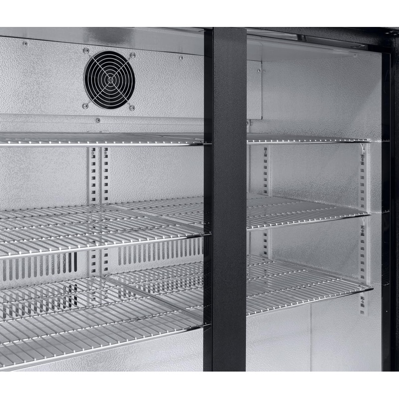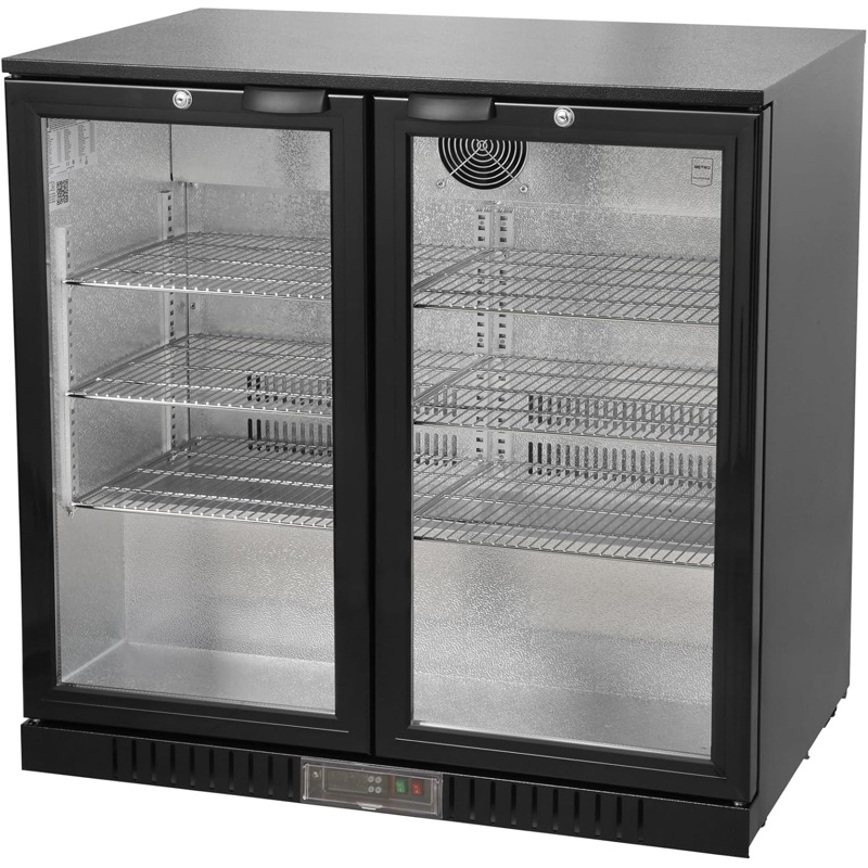 El frigorífico para bebidas METRO GBC3002 tiene una capacidad total de 198 L y unas dimensiones de 90 x 53 x 86,5 cm. Cuenta con enfriamiento por ventilación que mantiene la temperatura uniforme en todo el interior, sistema de descongelación automática y cerradura integrada. Incluye iluminación LED y estantes internos ajustables para organizar botellas y latas. Su construcción combina metal y vidrio, ofreciendo estabilidad y resistencia. La potencia del compresor es de 160 W y el control de temperatura se realiza mediante panel electrónico. La eficiencia energética está clasificada como D según normativa vigente, asegurando conservación constante de los productos refrigerados mediante circulación interna de aire uniforme.