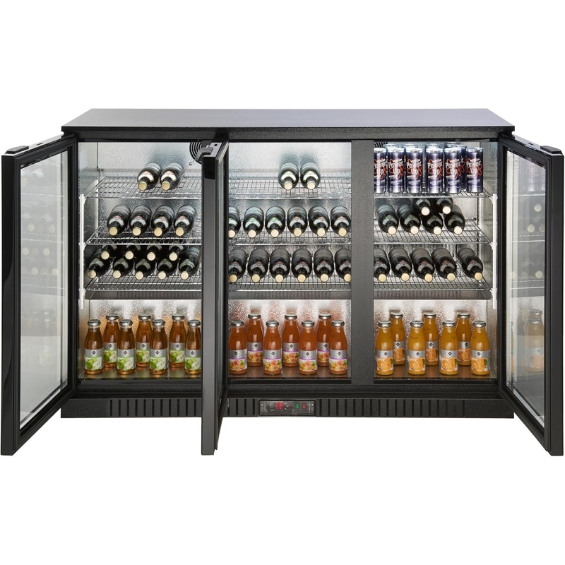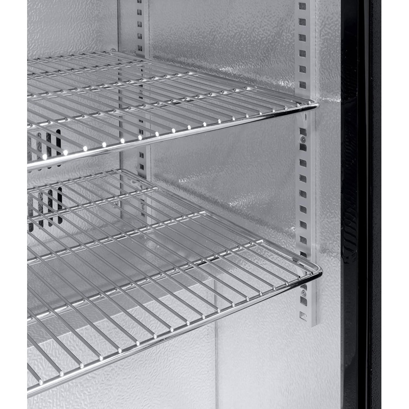 El frigorífico para bebidas METRO GBC3003 tiene una capacidad total de 308 L y dimensiones de 135 x 53 x 86,5 cm. Cuenta con refrigeración por aire que mantiene la temperatura uniforme en todo el interior, sistema de descongelación automática y cerradura integrada. Incluye iluminación LED y estantes internos ajustables para organizar botellas y latas. Su construcción combina aluminio y vidrio, ofreciendo resistencia y estabilidad. La potencia del compresor es de 160 W y el control de temperatura se realiza mediante panel electrónico. La eficiencia energética está clasificada como D según normativa vigente, asegurando conservación constante de los productos refrigerados mediante circulación interna de aire uniforme.