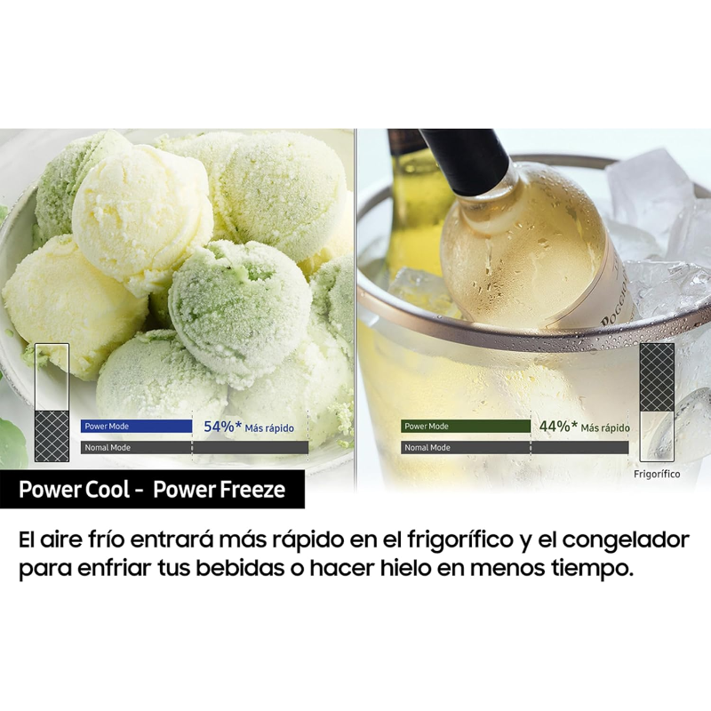 El frigorífico combinando Samsung RB38C600ESA/EF tiene una capacidad total de 390 litros, distribuidos en un compartimento de refrigeración y un congelador. La parte de refrigeración cuenta con estantes de vidrio templado y un sistema de control de temperatura. El compartimento de congelación dispone de un sistema de frío ventilado y bandejas de plástico. Este modelo incluye tecnología No Frost, que evita la acumulación de escarcha en ambos compartimentos. Tiene un compresor digital inverter, que ajusta la velocidad de funcionamiento en función de la demanda de refrigeración. El frigorífico también está equipado con un dispensador de agua, que permite acceso a agua fría sin necesidad de abrir la puerta. Su sistema de iluminación LED proporciona visibilidad interna. Los estantes ajustables permiten la reconfiguración del espacio según la necesidad de almacenamiento. El modelo cuenta con eficiencia energética clase E, contribuyendo a un menor consumo de electricidad. Además, el frigorífico utiliza refrigerante R600a, un gas más eficiente en términos de impacto ambiental. Este frigorífico se conecta a una toma de corriente estándar y requiere un mantenimiento regular para su buen funcionamiento. Las puertas son reversibles, lo que permite una instalación flexible en diferentes espacios. La instalación del producto debe seguir las indicaciones del manual del usuario para asegurar su correcto funcionamiento y una ventilación adecuada.